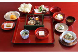 平成22年秋、APEC2010配偶者プログラムにて、精進料理の御昼食を提供致しました。ご好評いただきました同お料理を、北鎌倉店より【賓客おもてなし膳】としてお出ししております。