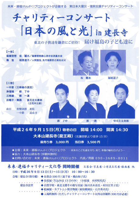 東日本大震災・復興支援チャリティーコンサートが開催されます。